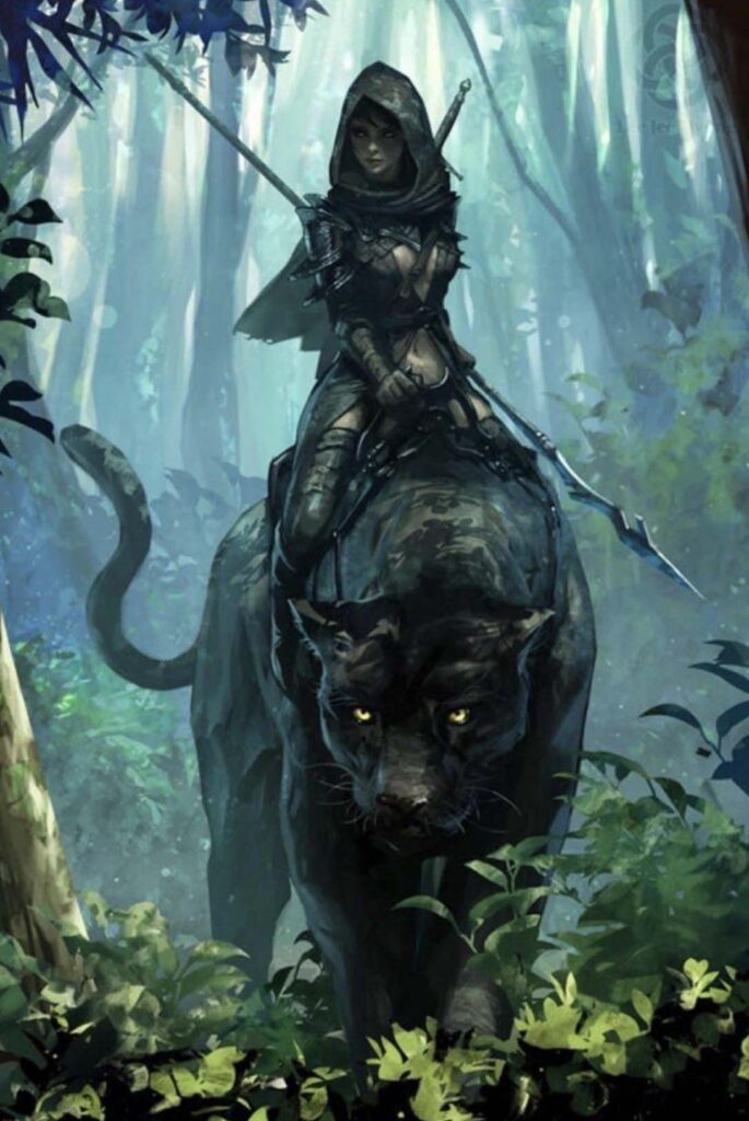 Озирнувшись довкола, герой побачив дівчину, котра сиділа верхи на пантері. Він навіть не став чинити опір, усвідомлюючи, що проти чорного звіра, в поле зору якого він потрапив, один лиш спис безсилий.