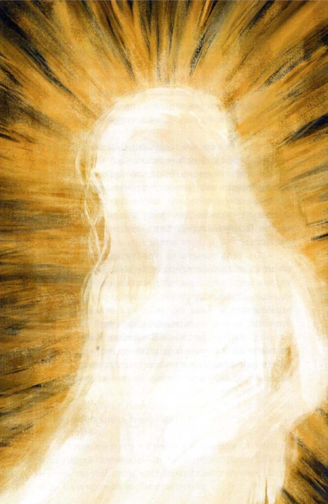 Кайден отямився від гучного дзвону кольчуги об землю. Розплющивши очі, побачив когось, що стоїть перед ним. Головний герой подумав: ‘Невже це сам ангел…’ Він був прямоходячим і кремезним, одягнений у попелясту броню, мав маску на все обличчя з металічною решіткою замість рота, меч на який не можна було просто так подивитися через чисте світло, що могло призвести до сліпоти, ремінь у пряжці, в якому фіксувалися два мечі тичкового типу з дамаської сталі, м’які чобітки з ошатною вишивкою, а також зверху мав мантію з капюшоном і бойові східні рукавички, на яких кріпилися металеві пазурі замість кінчиків пальців. Але найбільшою особливістю були величезні розмашисті білі крила, які означали перевагу. Він сказав: